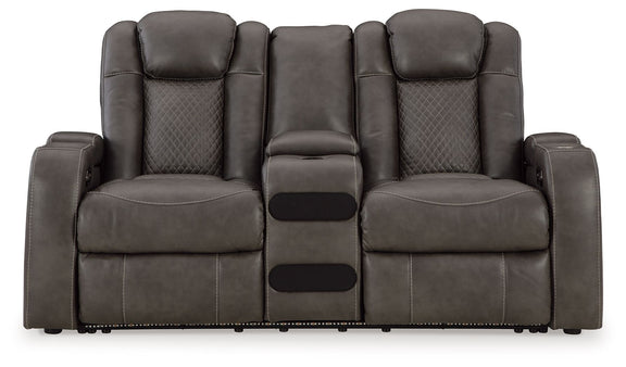Fyne-Dyme - Power Reclining Loveseat with Console/Adj Hdrst - Shadow