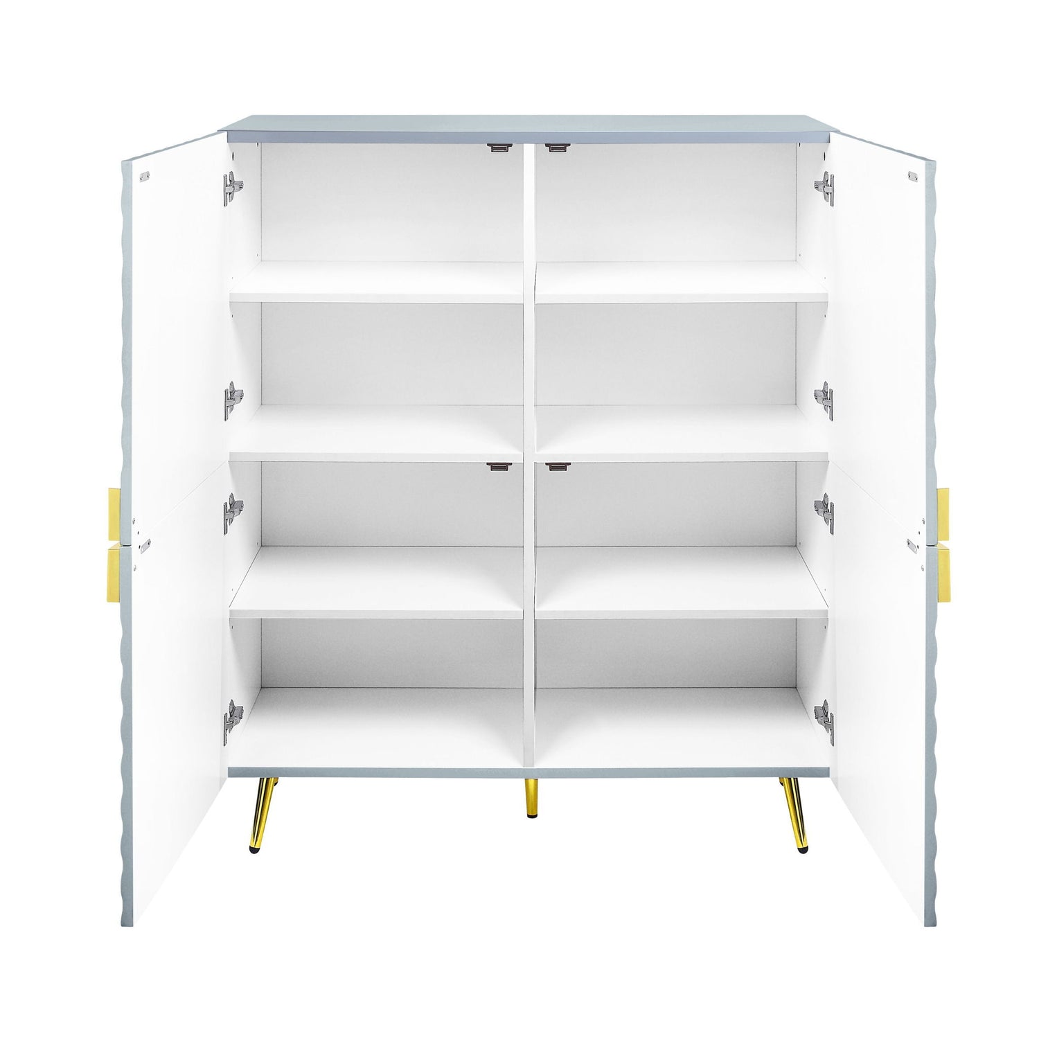 - Ample Storage: Equipped with four doors and four adjustable shelves, this cabinet offers generous storage space, ideal for organizing belongings in a sleek and modern fashion.