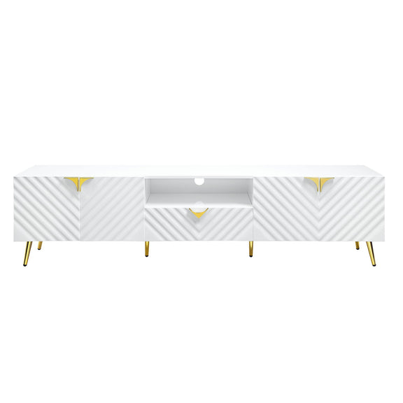 - Modern Design: The Gaines White TV Stand features a fully KD structure with a high gloss finish and a unique wave pattern design, providing a stylish and contemporary look for your living space.