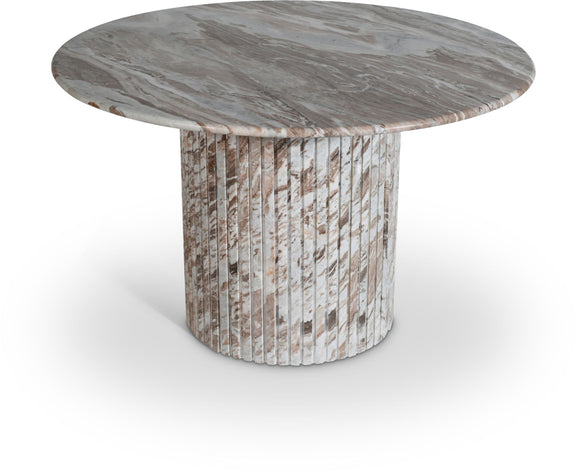 Brighten your domain with the Genoa toronto marble dining table, a stunning handcrafted piece made from genuine marble. This luxurious table features a beautiful wavy multi-colored pattern with brown and white that add depth and sophistication to any room. The fluted marble base provides a unique, textured touch, combining style and durability in one exquisite design.