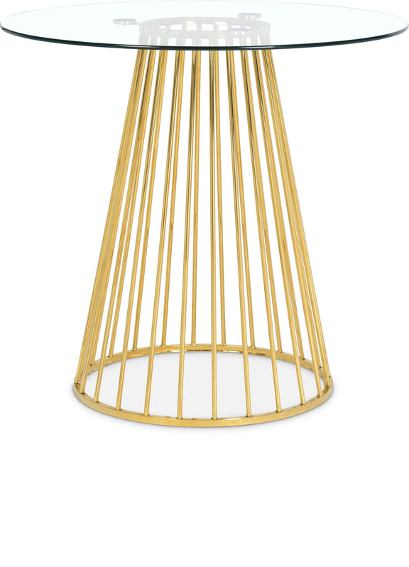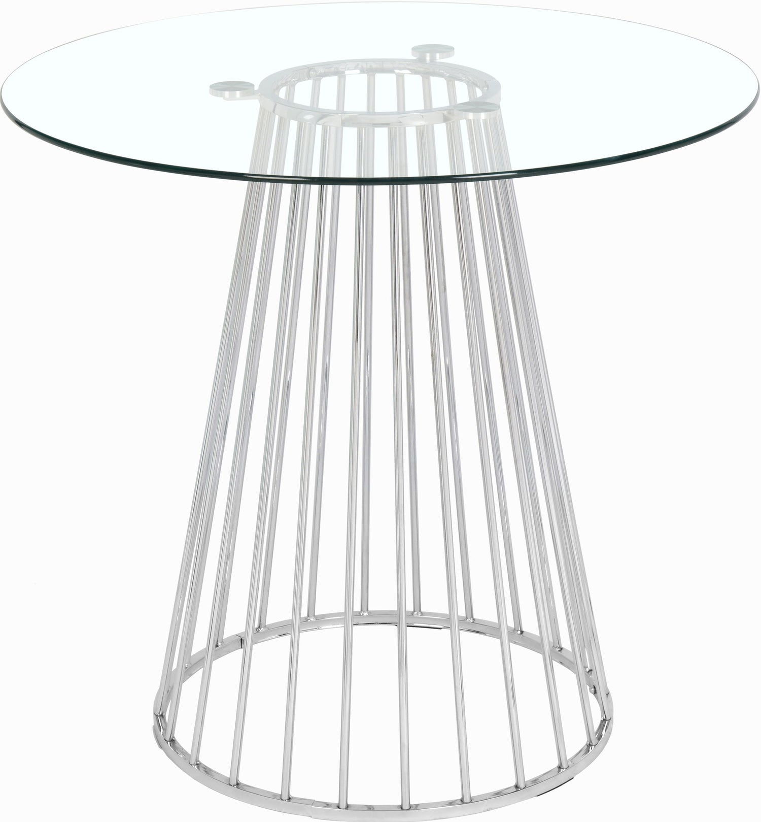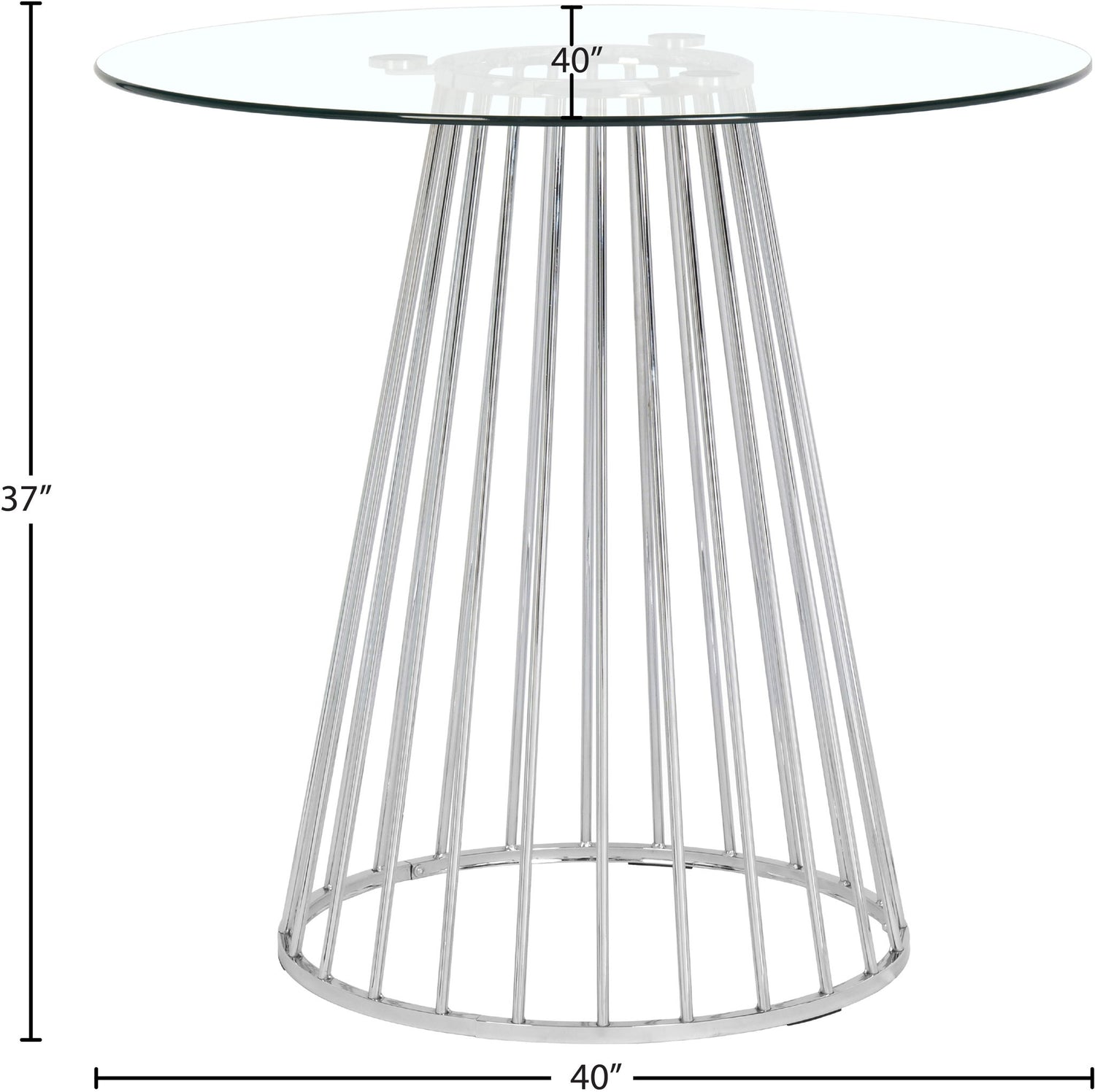 Add a bold touch to your dining area with this chic Gio counter height table. Featuring a round, clear tempered glass tabletop and a polished metal base with a wired contemporary design, this dining table transforms your dining space into a stylish haven.