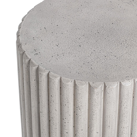 Bring sculptural elegance to your outdoor space with this accent table, crafted from glass fiber reinforced concrete for exceptional durability. The fluted column design adds architectural charm, making it both functional and artistic. Perfect for holding drinks, lanterns, or decorative accents, it’s ideal for patios, garden lounges, or poolside retreats. Pair with contemporary seating or complement it with a matching planter to create a cohesive, resort-inspired outdoor sanctuary you’ll love entertaining in.