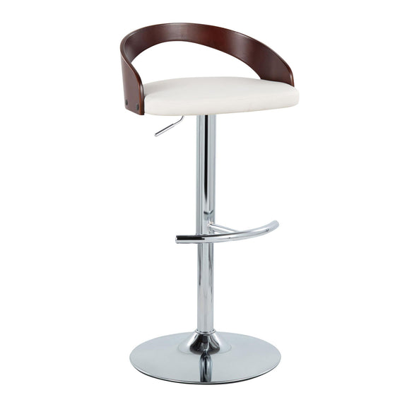 Grotto - Contemporary Adjustable Barstool With Swivel With Rounded T Footrest (Set of 2) - Chrome / Cherry / White