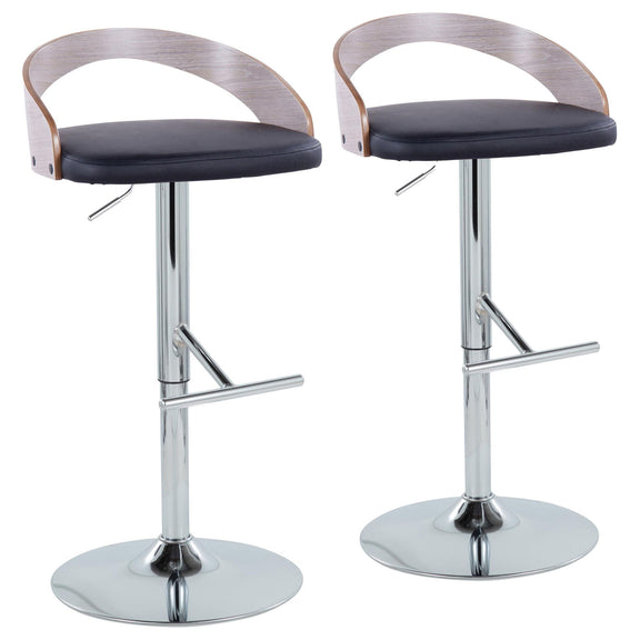 Grotto - Contemporary Adjustable Height Barstool With Swivel With Straight T Footrest (Set of 2) - Chrome / Light Gray / Black