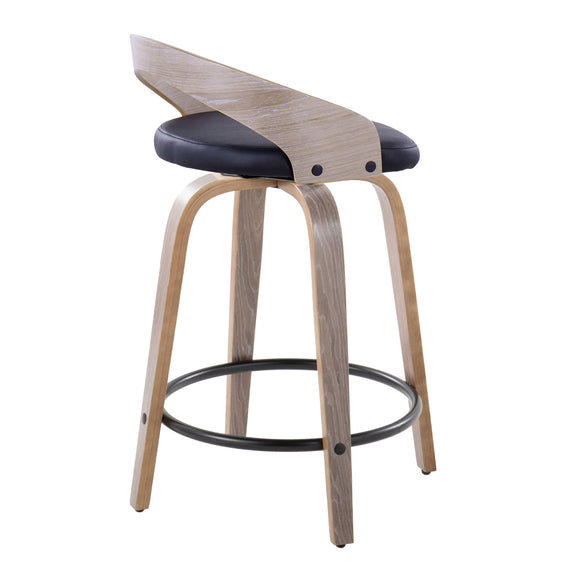 Grotto - Contemporary Fixed Height Counter Stool & Swivel With Round Footrest (Set of 2) - Light Gray / Black