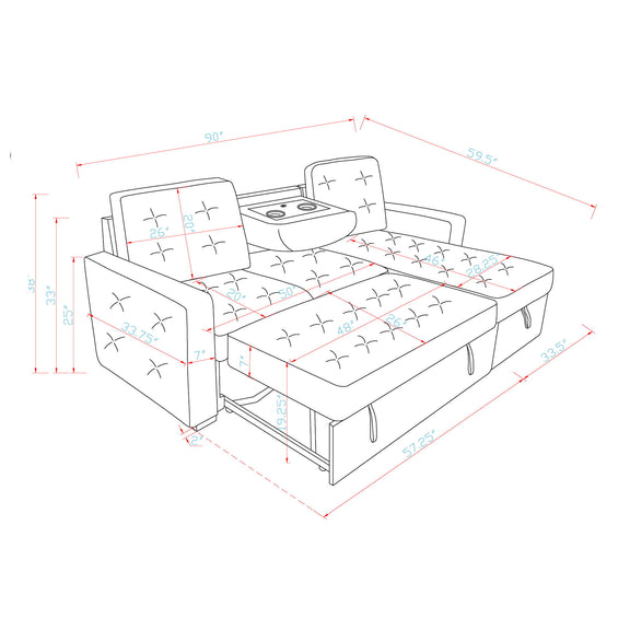 • Pull Out Sofabed: Transforms from sofa to full-sized bed with simple mechanism
