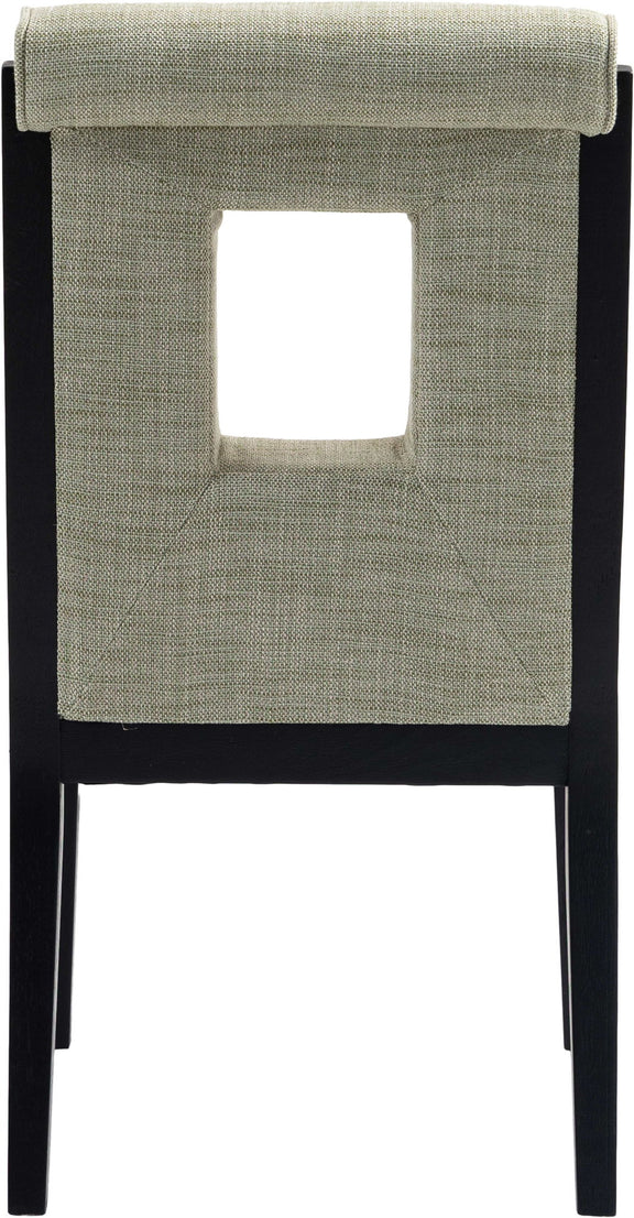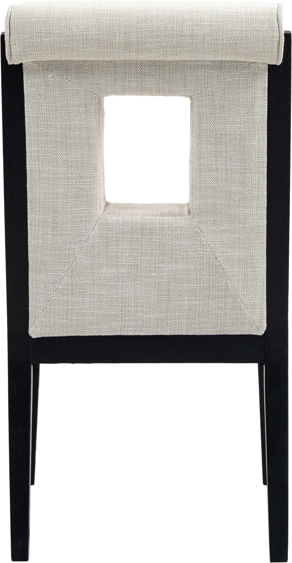 A masterpiece of modern elegance and comfort, the Gwendolyn linen textured fabric dining side chair is where modern design meets timeless charm. Designed with comfort in mind, it features a high back and luxurious cushioning, perfect for long dinners or lively gatherings. The black wood frame adds a rustic touch, effortlessly balancing the contemporary fabric with a hint of warmth and tradition.