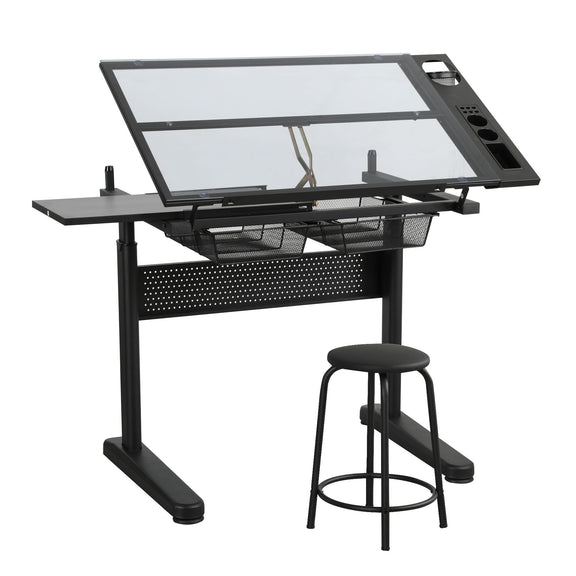 • Tiltable Tempered Glass Desktop: 5mm thick glass top can be tilted from 0 to 75 for versatility.