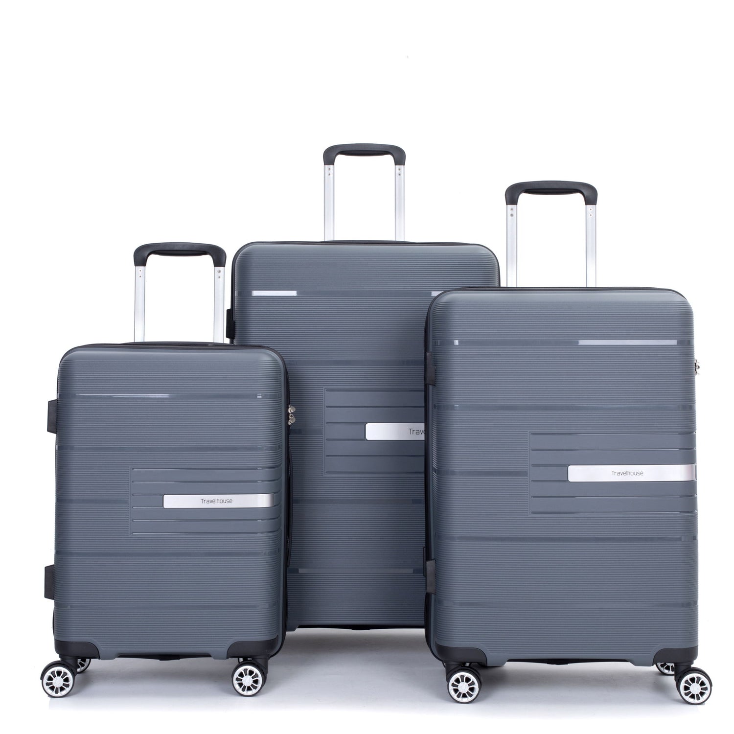Hardshell Suitcase Double Spinner Wheels Pp Luggage Sets Lightweight Durable Suitcase With Tsa Lock, 3 Piece Set (20/24/28) - Gray