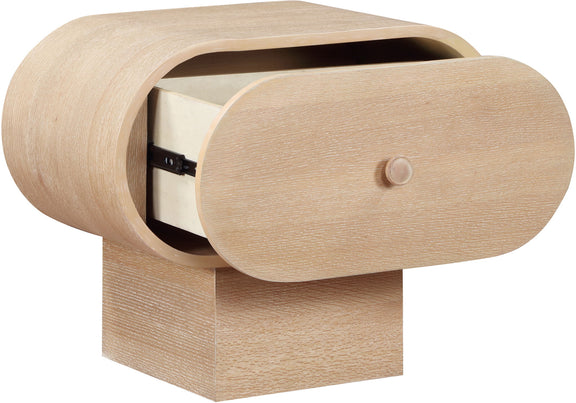 Slumber well knowing the things you need most at night are tucked out of sight and within easy reach with this Harlow nightstand. Its rich finish and oak veneer, crafted from a mix of solid wood and MDF, embody art deco elegance. Featuring natural wood grain variation, each piece is uniquely beautiful. A single drawer with an attractive pull offers discreet storage, blending practicality with timeless design. Enhance your bedroom with this sophisticated accent that combines function with exquisite craftsmanship.