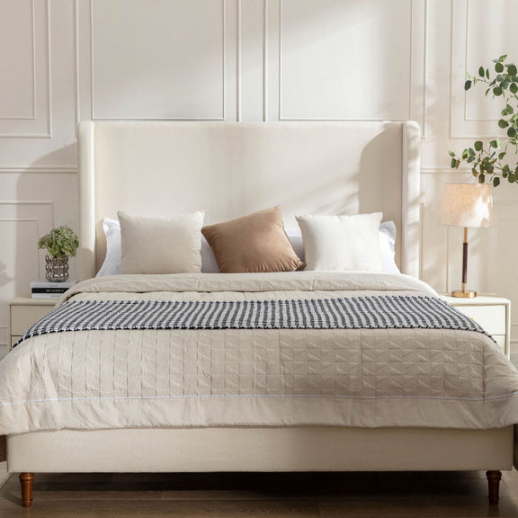Harper - California King Size Tall Headboard Upholstered Boucle Bed - Ivory