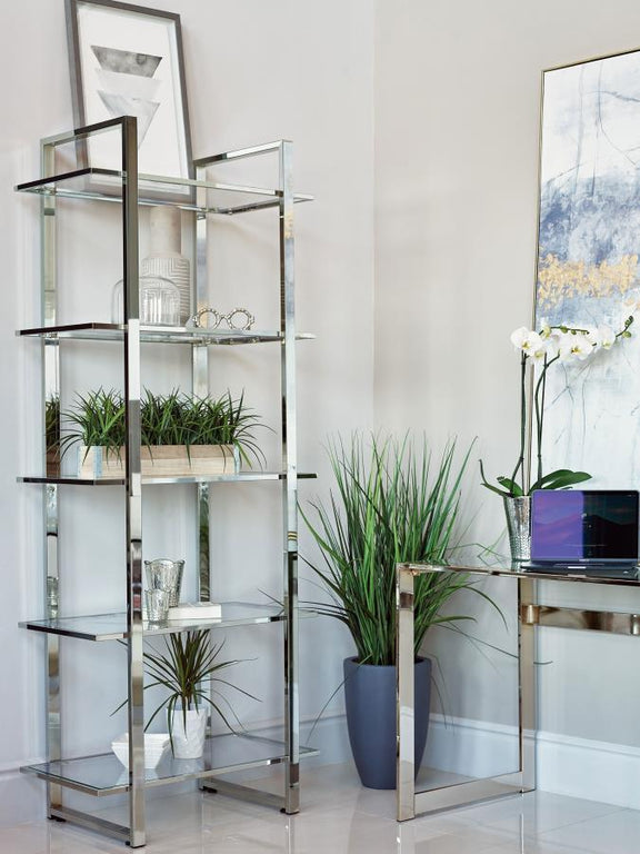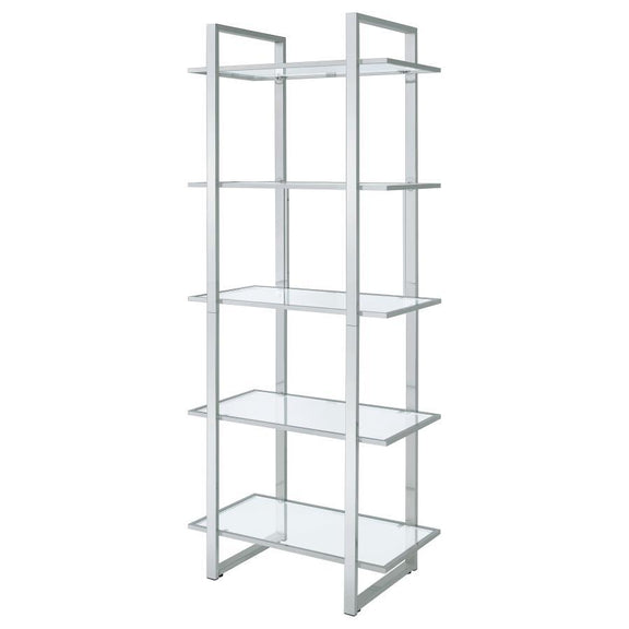 Hartford - 5-Shelf Glass Bookshelf - Chrome