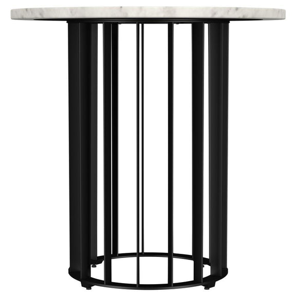Haven - Round Genuine White Marble Top End Side Table - Black