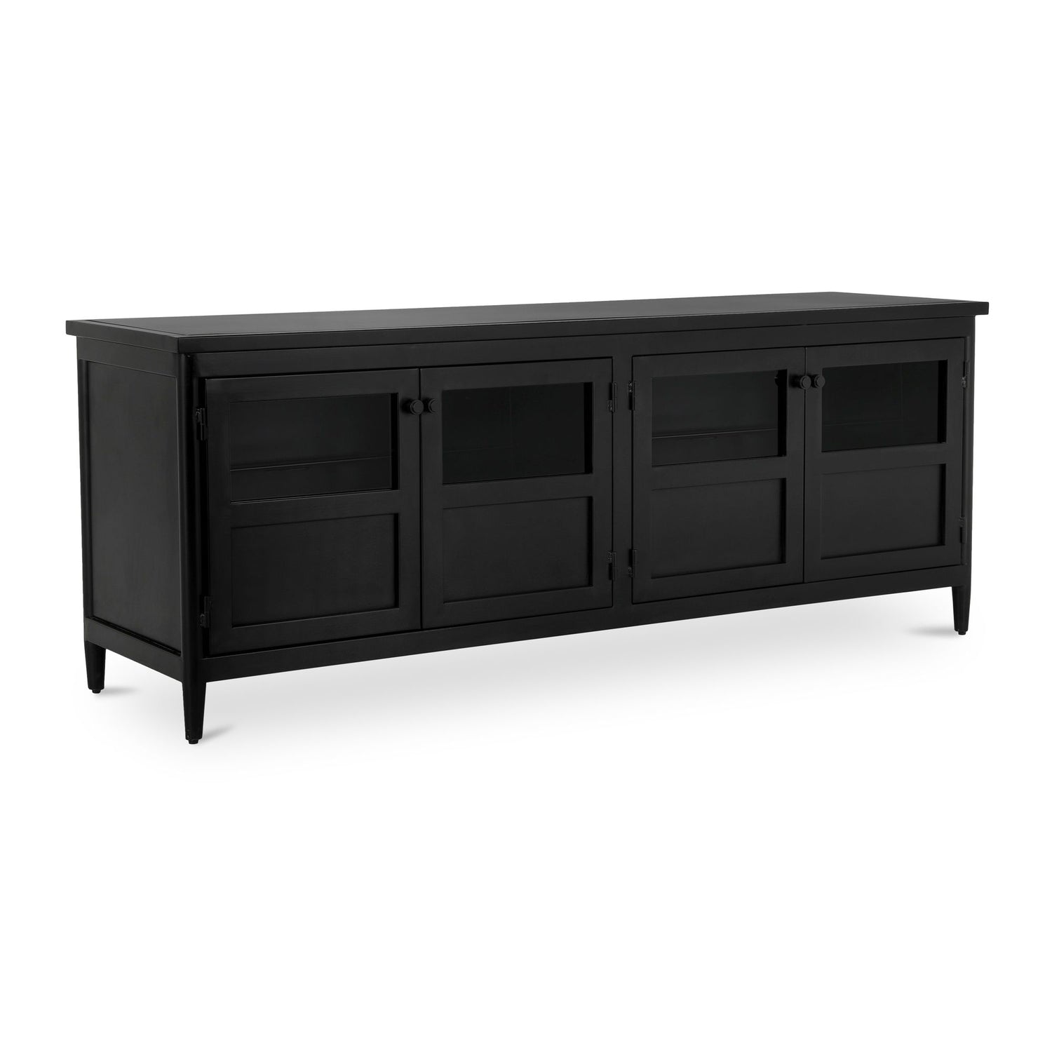 Built differently. The case for going full metal. Henry brings something different to the mix—full metal construction with a clean, transitional frame that adds texture and polish to any space. Four doors, half-glass and half-solid, offer a sleek way to show off what you love and stash what you don’t. Inside, adjustable shelves and media cutouts keep things tidy. Finished in matte black powder-coated steel, it’s a storage piece that keeps its cool—on display and behind the scenes.