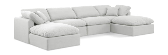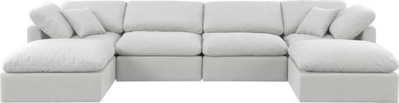 Indulge - Linen 6 Piece Modular Double Chaise Sectional - White