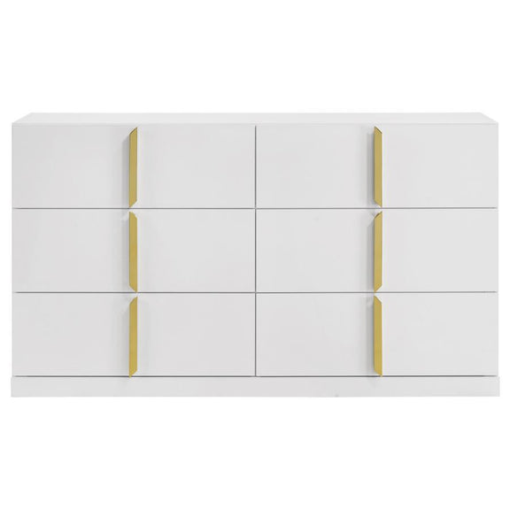 Ines - 6-Drawer Bedroom Dresser Cabinet - White High Gloss