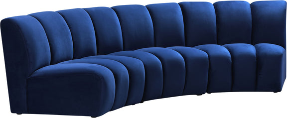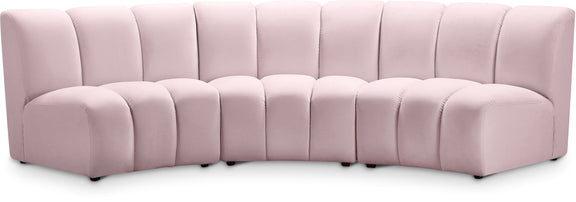 Create a seating group that works for every possible situation with this Infinity modular sofa and other pieces in the Infinity collection. Upholstered in soft velvet material that feels great against the skin and offers long-wearing beauty, this piece fits with other Infinity items for an infinite number of combinations that get your seating requirements just right but that look just as nice when used on their own.