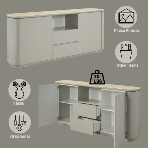 • Ample Space: Offers spacious inner and open compartments for versatile storage and display.