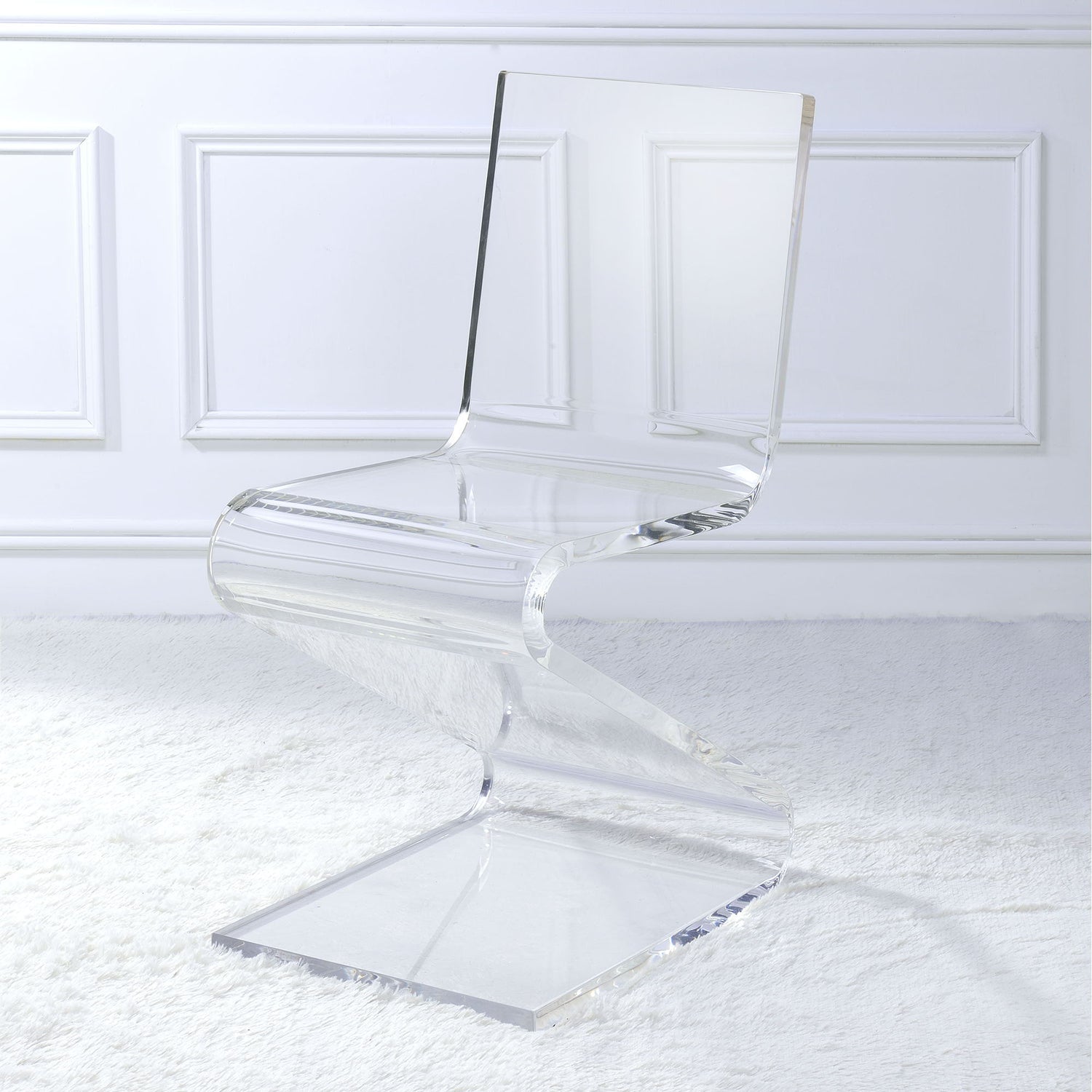 The Iris Z-Chair is the missing piece to your home! This super stylish chair can go anywhere in your home thanks to its fun, modern style. Pair this chair with a cool dining table or just make it a standout on its own in your bedroom or living roomthe options are limitless. The chair features a solid seat and back and the entire chair is made out of acrylic. Add this Z-Chair to your home today for an instant touch of glam.