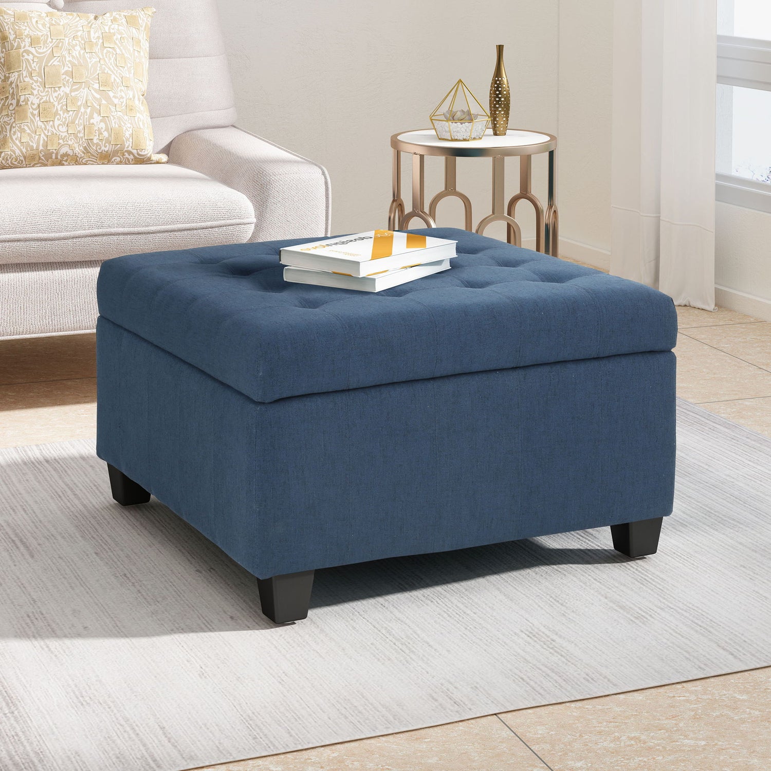 Isabella - Elegant Ottoman With Storage Functionality - Navy Blue Fabric