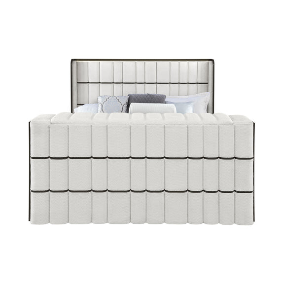 Isaiah - King Bed With 50" TV Lift LED, Speakers And Fireplace - White / Black