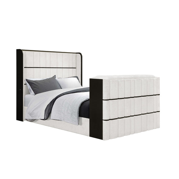 Isaiah - Queen Bed With 50" TV Lift LED, Speakers And Fireplace - White / Black
