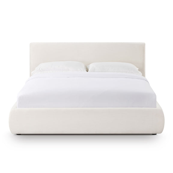 Indulge in the luxurious comfort of the Isla Bed, available in king or queen sizes and designed to elevate your sanctuary. Choose between cream upcycled chenille, a cream jacquard, or textured velvet in black or taupe. Its elegantly rounded rails and footboard, along with mitered corners, create a soft, inviting silhouette. The plush headboard invites you to lean back and unwind, making the Isla Bed the perfect haven for restful nights and dreamy mornings.