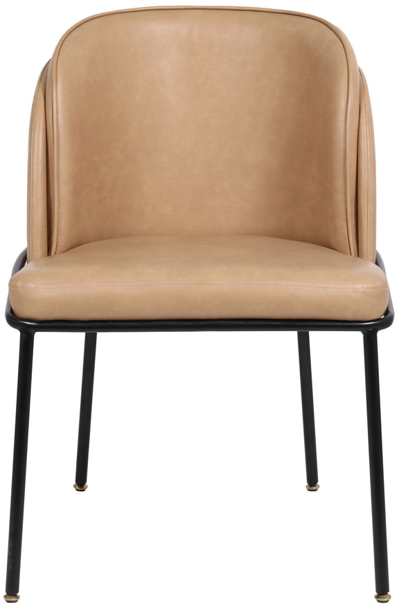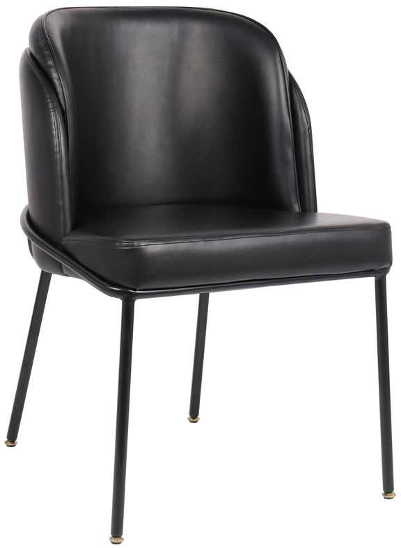 Enjoy the look of fine leather without the cruelty or expense when you bring home this Jagger faux leather dining chair. Upholstered in soft vegan leather, this chair features matte iron legs for sturdy support. Count on the double cushion back to keep you or guests comfortable from appetizers through dessert. Pair this pretty dining chair with the table of your choice for a complete look.