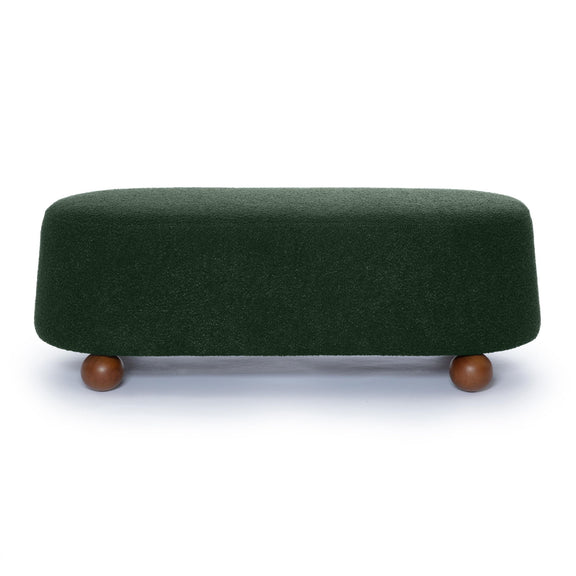 Add a playful charm to your space with the Jaine Stool, boasting a slightly conical shape that catches the eye. Its spherical solid wood legs provide a sturdy base, while the nubby boucle (available in chocolate brown, cream, or forest green) or loose faux mohair (available in forest green and stone grey) upholsteries add a modern, textured touch. Not only is it on-trend with its color palette, but this ottoman also seamlessly blends contemporary style with a tactile experience, making it a must-have for any room. Also available in two size variations!