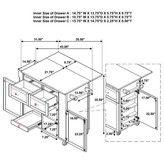 43.0"W x 31.5"D x 35.5"H - 121.28 lb