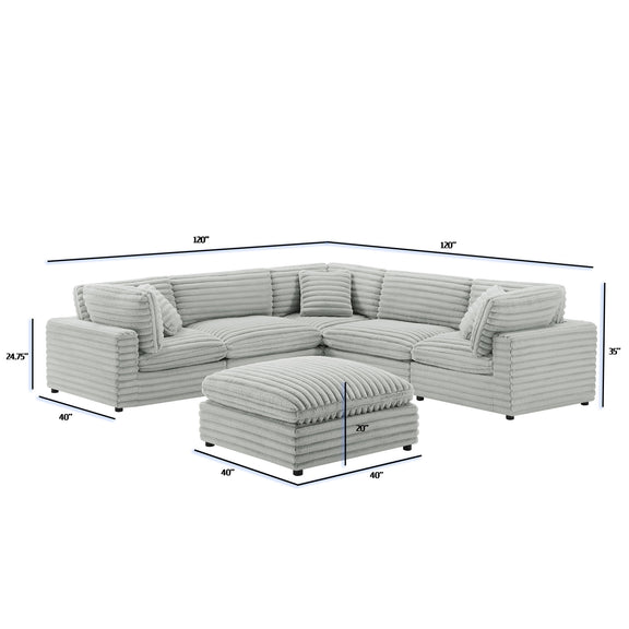 • Customizable Layout: Easily reconfigure corner wedges, armless chairs, and ottoman for personalized space use