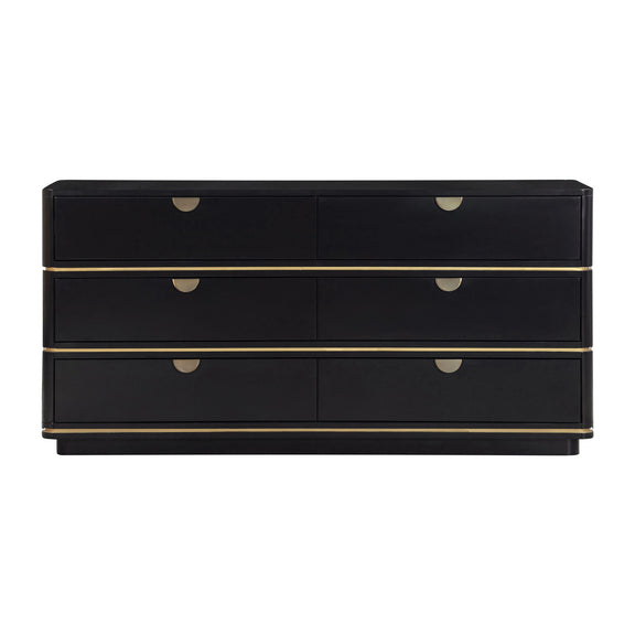 The Julieta 6 Drawer Dresser is an Art Deco masterpiece. The spacious soft-close drawers offer ample storage space, and the acacia wood material ensures great stability. Available in three classic color options, accented with brass pulls and delicate inlay, the Julieta will effortlessly add drama and sophistication to any space.