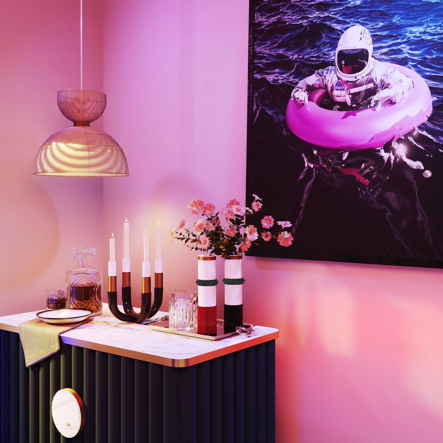 Embrace the artistic allure of the Kaonashi Vase! Crafted with careful attention to detail, this vase is made of iron and aluminum and features a tri-color design with interesting texture. The generous height at 9.3'' allows for your flowers to be on full display. The versatile design and color options allow this vase to suit any design style.