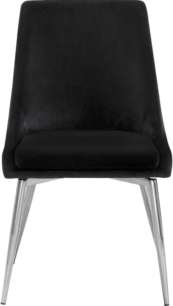 Extend contemporary panache to the dining room with this Karina Dining Chair. This dining chair features upholstery in sleek velvet for a modern look and has an armless design for a retro-inspired vibe. The stark color makes it easy to blend in with your existing decor colors or make a contrasting statement with ease. The slanted legs of this chair are finished for added modernity and to provide reliable and durable support while you dine.