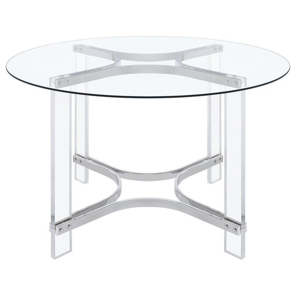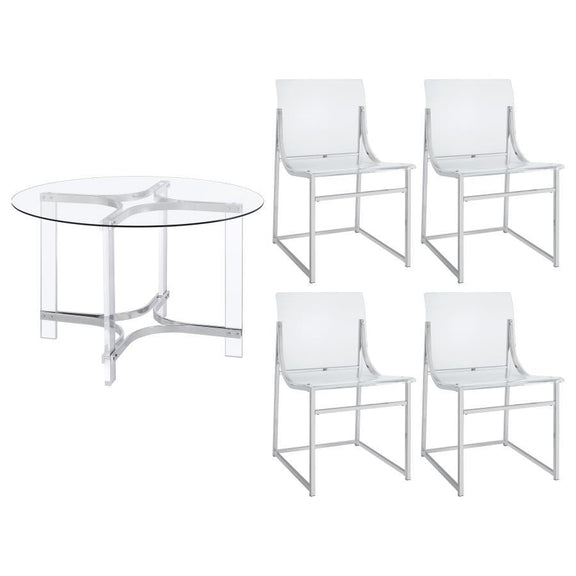 Keeling - 5 Piece Round Glass Top Acrylic Dining Set - Chrome