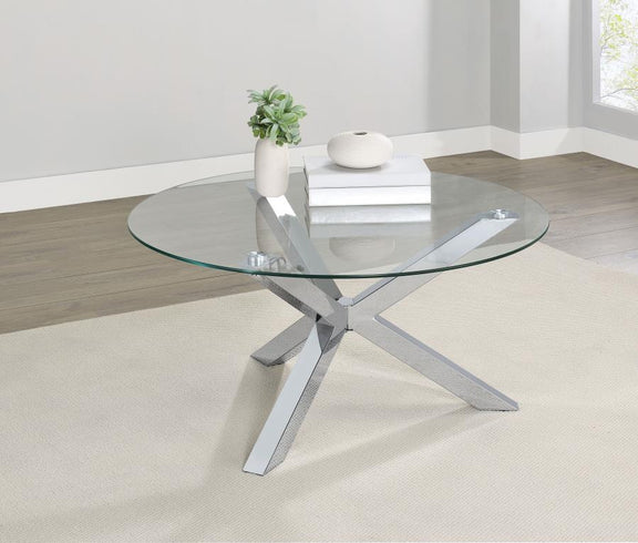 Kenzie - Round Tempered Glass Top Cocktail Coffee Table - Chrome