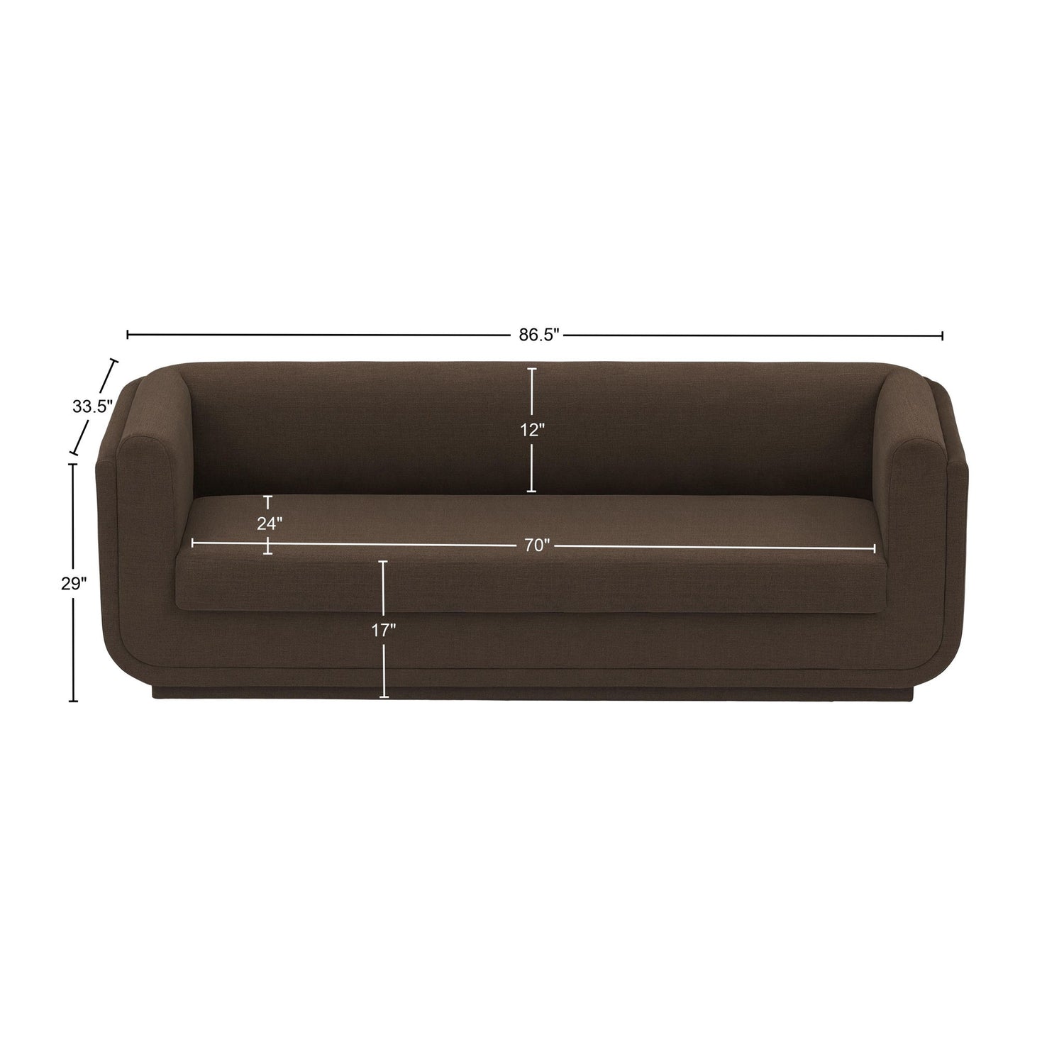 86.5"W x 33.5"D x 29.0"H - 152.0 lb