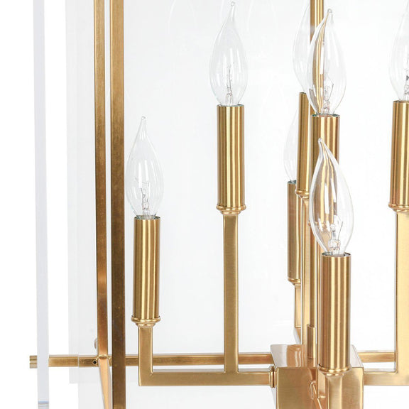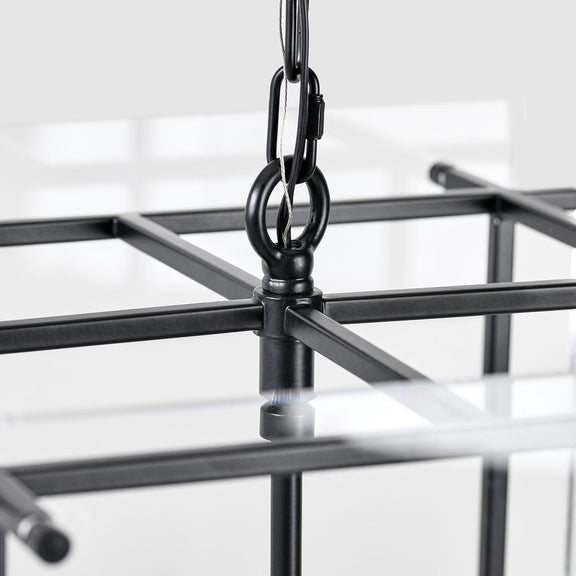 The Kiran Chandelier features a striking design with an iron frame encased in acrylic, blending industrial strength with refined elegance. The sturdy iron structure provides durability, while the sleek acrylic casing adds a modern, translucent touch that softens the look. This fusion of materials creates a sophisticated ambiance, casting a beautiful glow that transforms any space. Perfect for elevating both contemporary and classic interiors with its unique, eye-catching design.