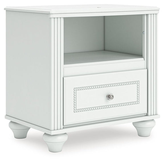 Fit for a princess. This nightstand’s crisp matte white finish pairs with charming ornate beading details and bun feet—perfect for your girly girl. Multicolored LED lighting and built-in USB charging are the crowning touches to make your little one feel like royalty.