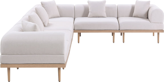 Laguna - 6 Piece Resilient Water Resistant Fabric 142" Upholstered Outdoor Patio Modular Sectional - Cream