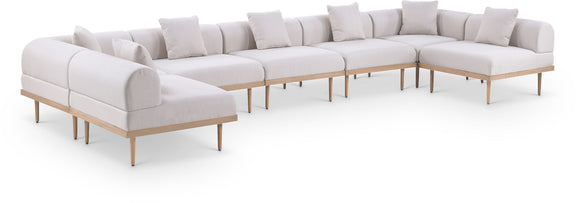 Laguna - 7 Piece Resilient Water Resistant Fabric 142" Upholstered Outdoor Patio Modular Sectional - Cream
