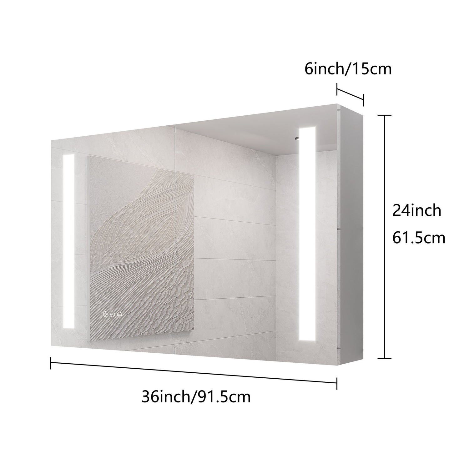 36" X 30" Medicine Cabinet With LED Vanity Mirror, Anti-Fog, Dimmable, Recessed Or Surface Mount, Aluminum 3000K~6000K Lighted Double Door Bathroom Cabinet With Touch Switch - Silver