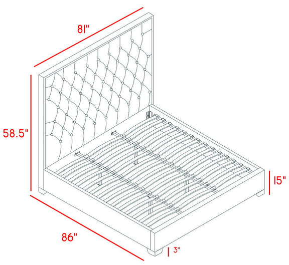Make the Lexi velvet bed part of your dream bedroom setup. This bed has all of the bells and whistles you want, including a super tall headboard that stands nearly five-feet tall. The bed is covered in velvet fabric for a luxe look, and it's deeply tufted for added luxuriousness. The headboard is soft and welcoming against your back and head as you read or watch TV in bed, and the bed rests on legs for dependable sturdiness and durability. Use it without a box spring or foundation, since the slats are included.