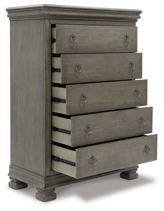 - 5 drawers with fully finished interiors, dovetail construction and ball-bearing side glides