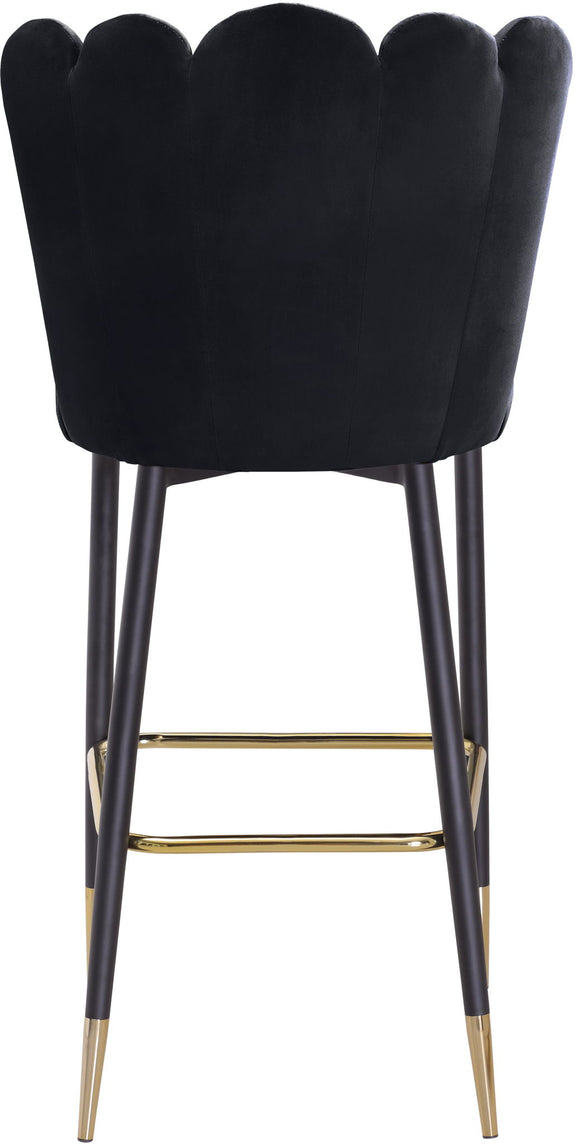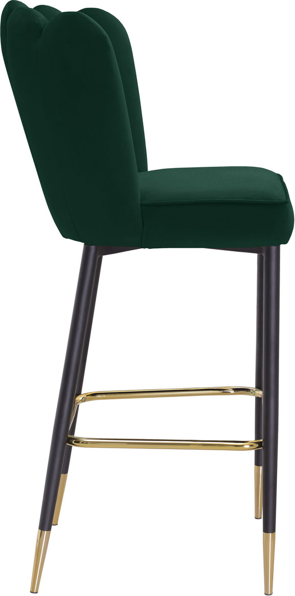 Fall fast and hard for the beautiful look of this Lily Bar Stool from Meridian Furniture. This lovely stool features a striking velvet fan-style back with deep tufting that helps the padding inside stay full and aloft for added comfort. The cushioned seat and back are upholstered to the hilt for maximum luxury and beauty. metal legs with a matte finish and tips add contemporary appeal to this handsome stool whether used at the bar or kitchen counter.