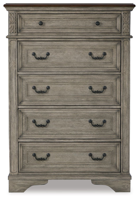 - Two-tone finish; antiqued gray body with a rich, deep walnut brown finish on top
