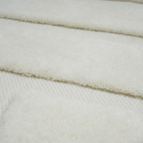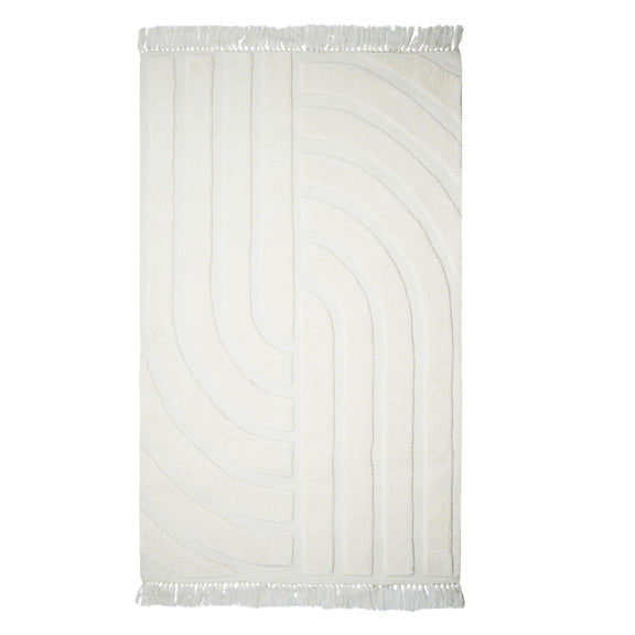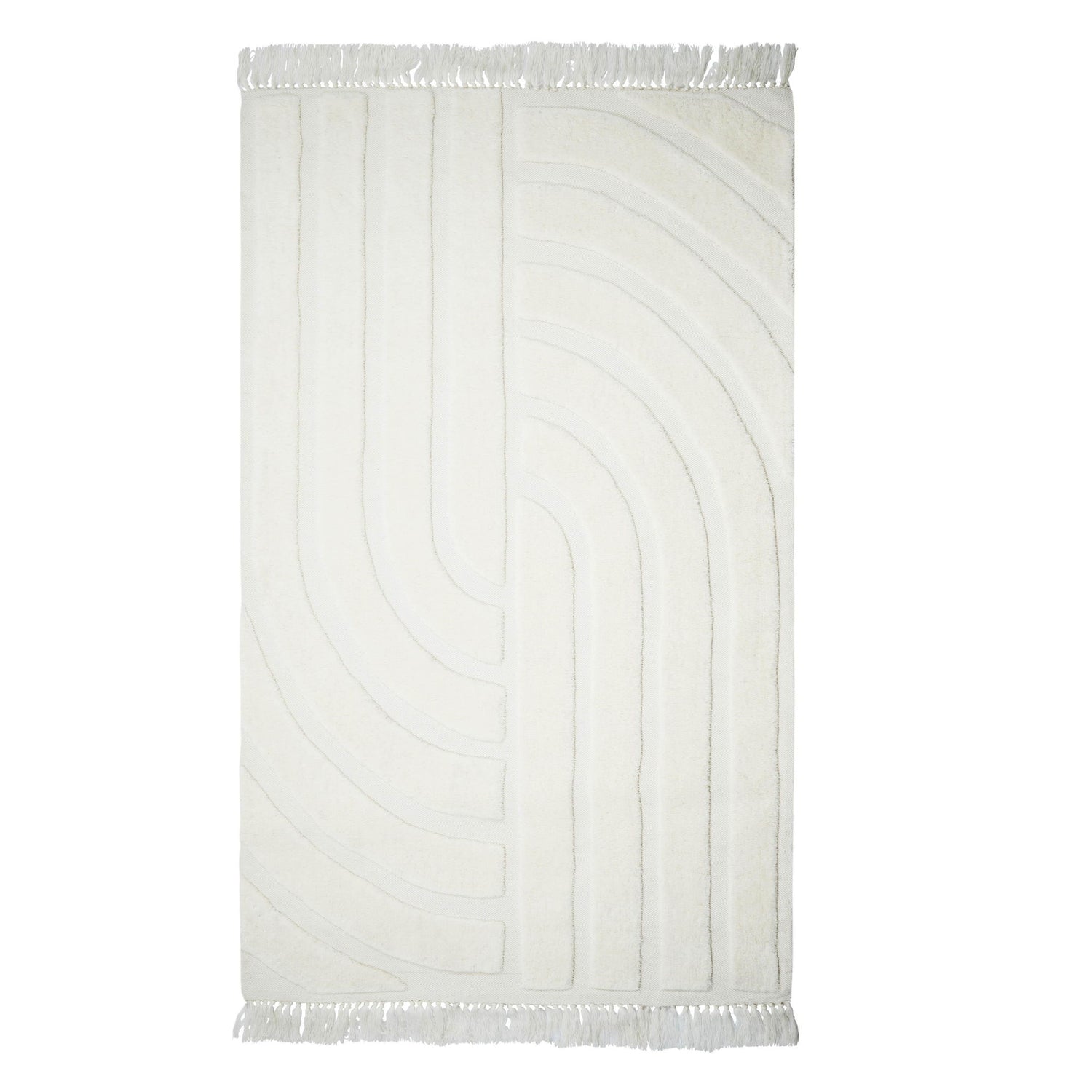 Introducing the Loop White Area Rug, a neutral color rug with an arched pattern. This handmade area rug is made of soft wool and cotton to provide ultimate comfort in your space.