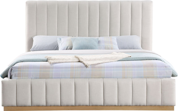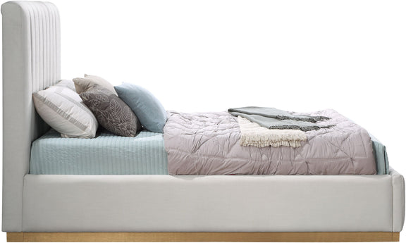 Remake your bedroom in an instant with this Lucia linen textured fabric bed. Upholstered in soft-to-the-touch linen textured fabric on its headboard, footboard, and side rails, this handsome bed has a high headboard for an attention-demanding look in your room. Channel tufting on the headboard and footboard add to its aesthetic beauty while providing texture and dimension. The bed rests on a black-finished base that's crafted from solid wood for lasting beauty and durability.