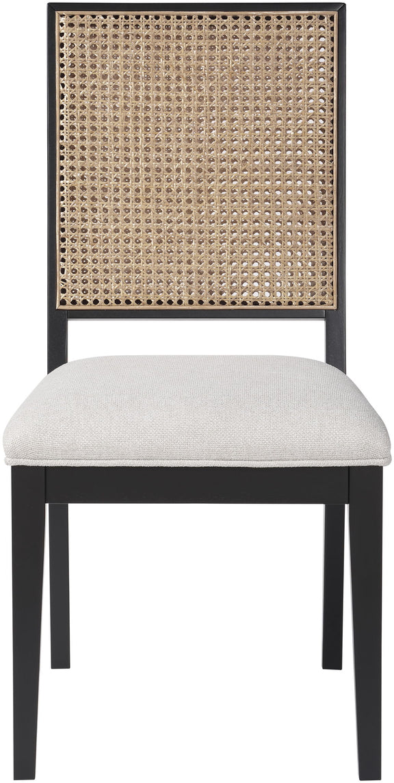 Give your dining space a traditional makeover with this Butterfly dining chair from Meridian Furniture. Its solid rubber wood frame features a sleek black finish, and its cushion is upholstered in soft cream linen-like polyester fabric, providing comfort and complementary colors to your dining table. Its natural cane back is reminiscent of a mid-century design, so you can relax in style as you dine, and making this piece right at home in any living space.