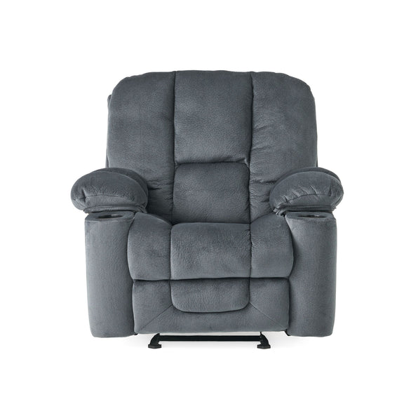 Luxurious Manual Recliner Chair With Skin-Friendly And Dual Cup Holders - Silver